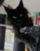 Farah is our beautiful midnight girl and she is never quiet. She’s incredibly chatty and always has something to say, especially if she’s curled up beside you on the sofa with the stove on and the room nice and warm. She absolutely loves her treats (ham is her favourite), and those eyes of hers stop people in their tracks.